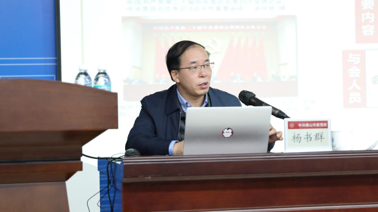 为深入学习贯彻党的二十届四中全会精神,切实把师生思想和行动统一到全会精神上来,11月21日上午,im电竞app-im电竞平台 举行“学习贯彻党的二十届四中全会精神暨党务干部履职能力提升培训班”第三讲。本次培训特邀中共佛山市委党校杨书群教授作题为“深学笃行党的二十届四中全会精神 接续推进中国式现代化”专题辅导。im电竞app 院长何新波与师生党员共同参加了学习。